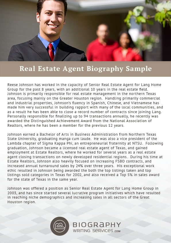 Real Estate Agent Biography Writing A Real Estate Agent Bio