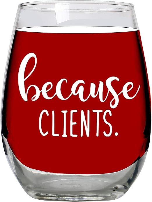 Amazon Com Because Clients Wine Glass 15oz Stemless Funny Wine