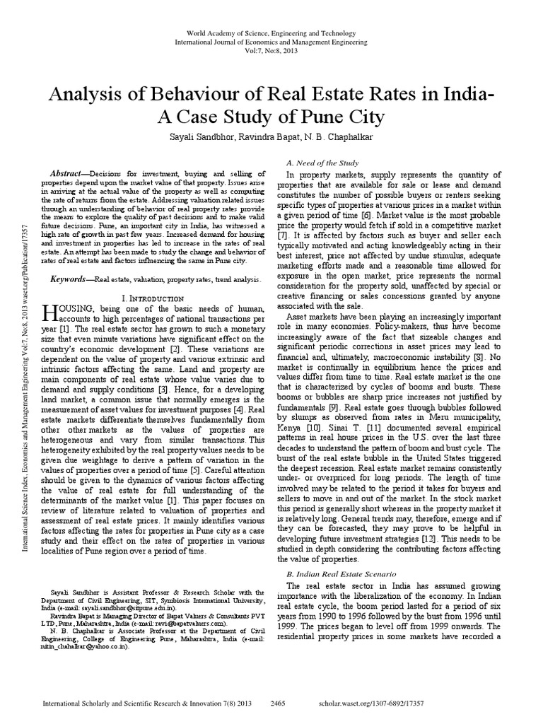 Pdf Analysis Of Behaviour Of Real Estate Rates In India A Case