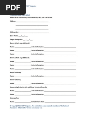 Real Estate Closing Transaction Checklist Vnd5j0ropglx