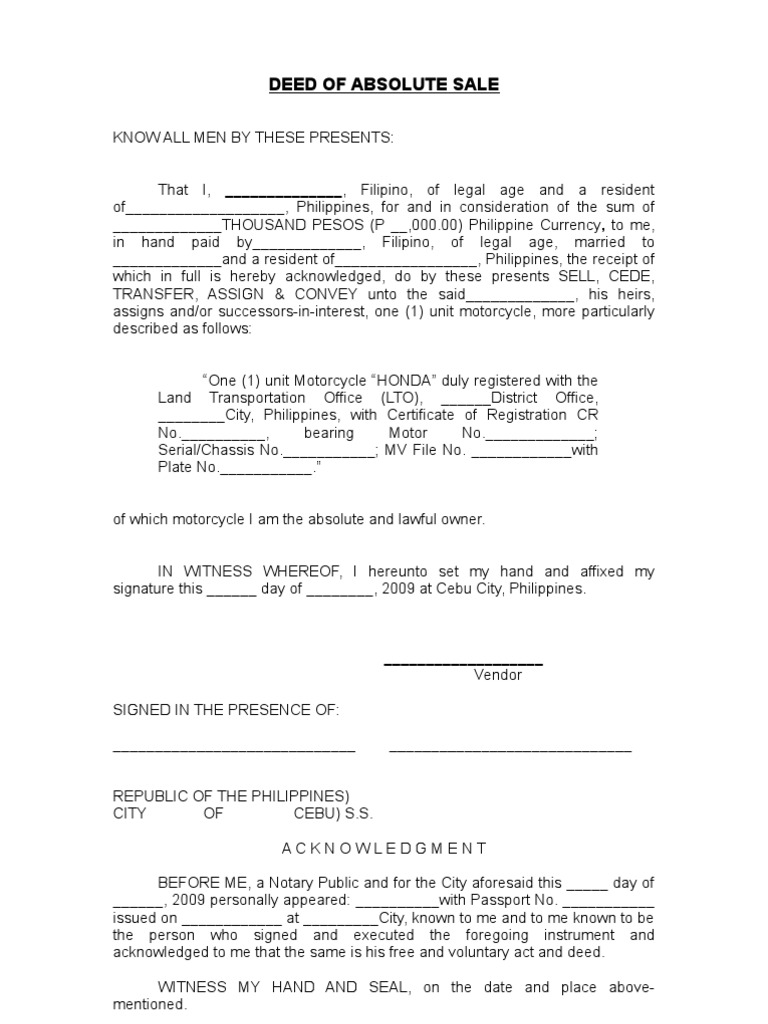 Deed of absolute sale know all men by these presents. This legal form transfers property to one party including property rights. Buying property in the philippines is not always easy.